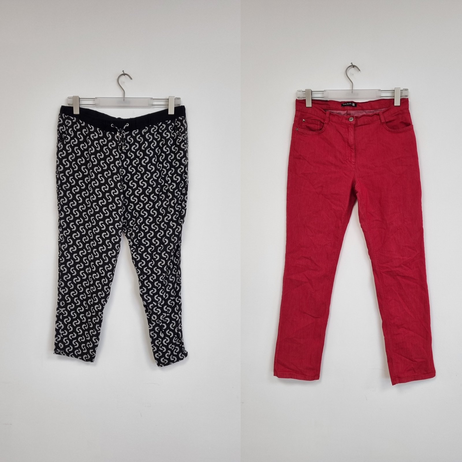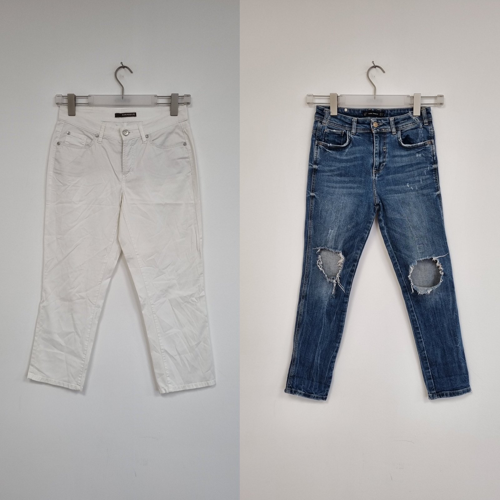 We offer used women's jeans and fabric trousers, available in various styles and sizes. Each pair in the package is carefully categorized and ready for resale. Trousers are an essential item in every woman's wardrobe, making them a must-have in your offer, both for physical second-hand stores and online shops.