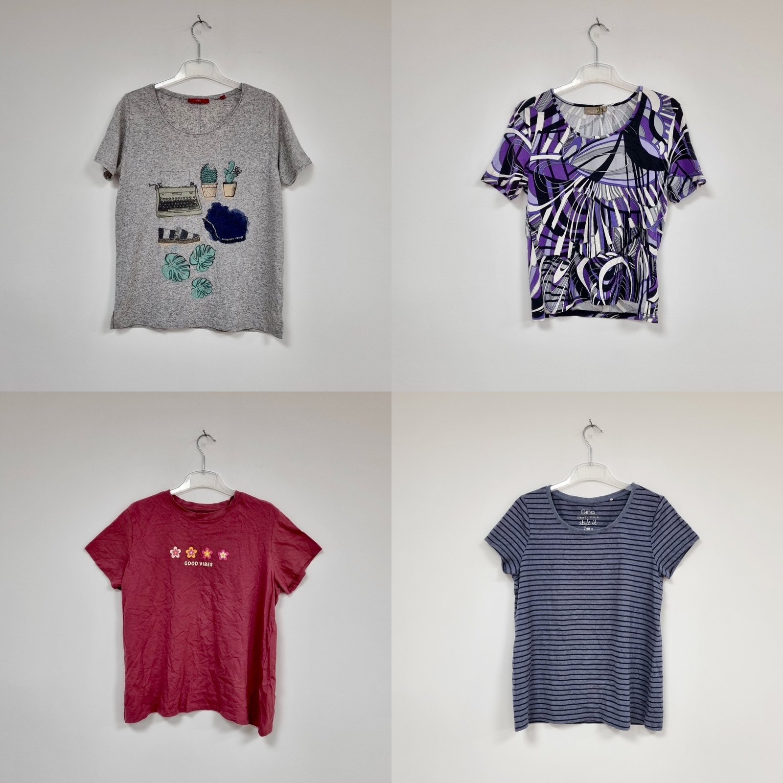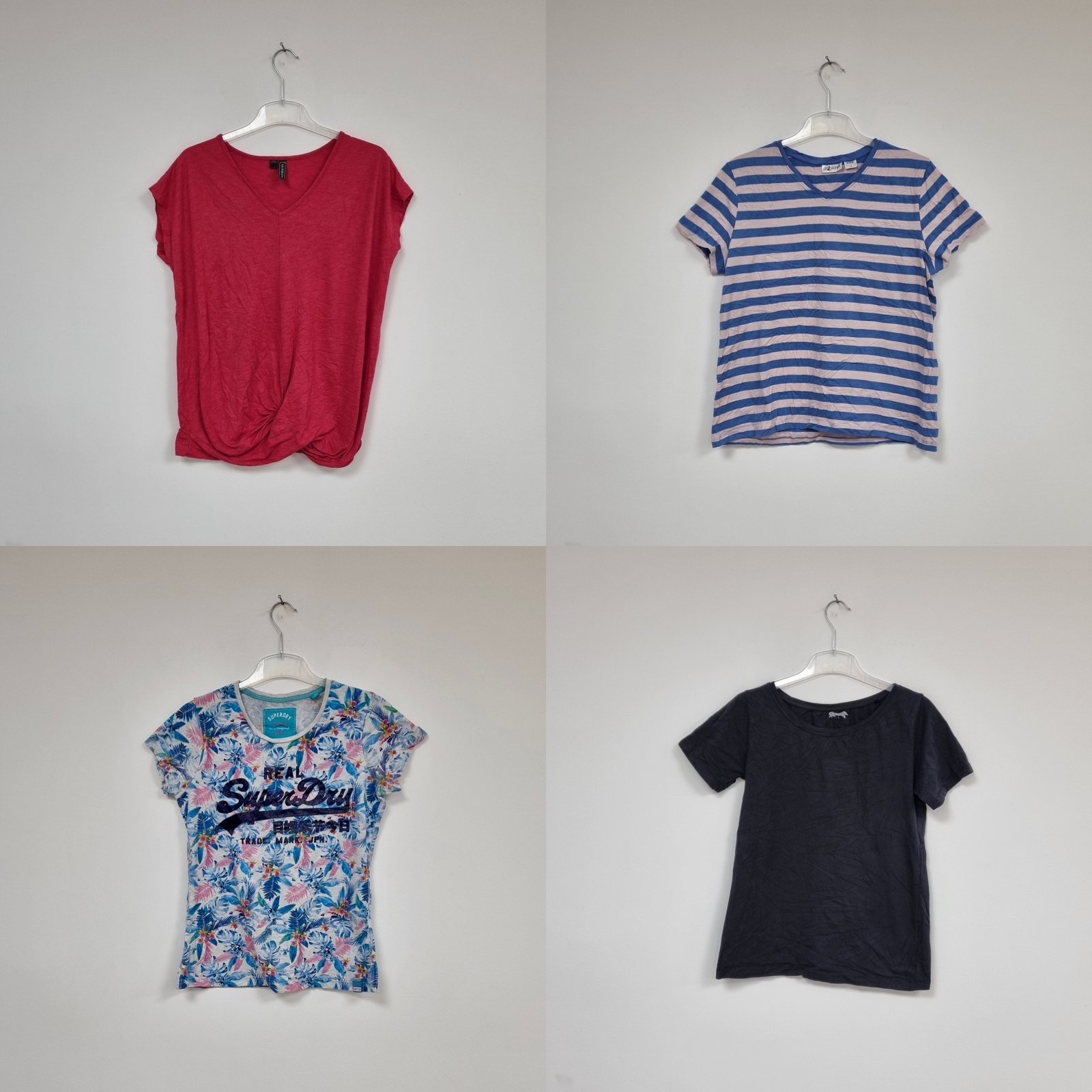 W skład pakietu wchodzą: T-shirty damskie w różnych rozmiarach,